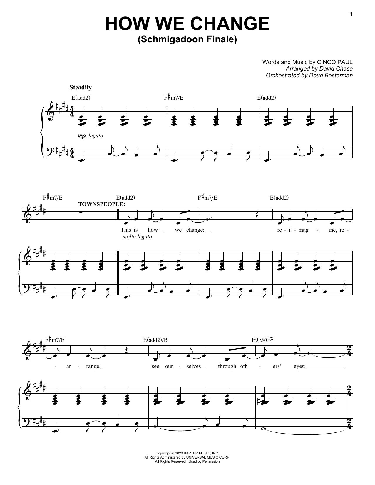 Download or print Cinco Paul How We Change / Finale (from Schmigadoon!) sheet music, chords and digital score arranged for Piano & Vocal. This Film/TV score includes 7 page(s).