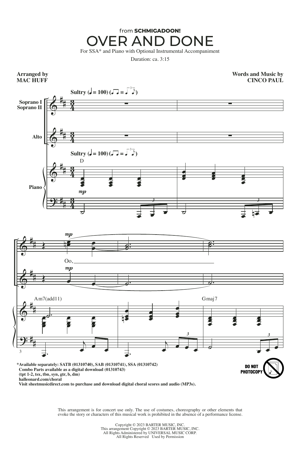 Download or print Cinco Paul Over And Done (from Schmigadoon!) (arr. Mac Huff) sheet music, chords and digital score arranged for SSA Choir. This Film/TV score includes 11 page(s).