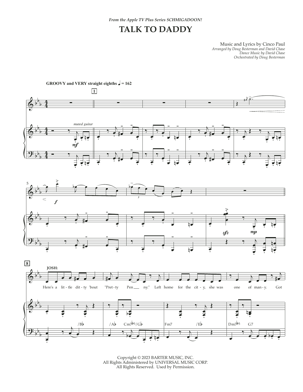 Download or print Cinco Paul Talk To Daddy (from Schmigadoon! Season 2) sheet music, chords and digital score arranged for Piano & Vocal. This Film/TV score includes 11 page(s).