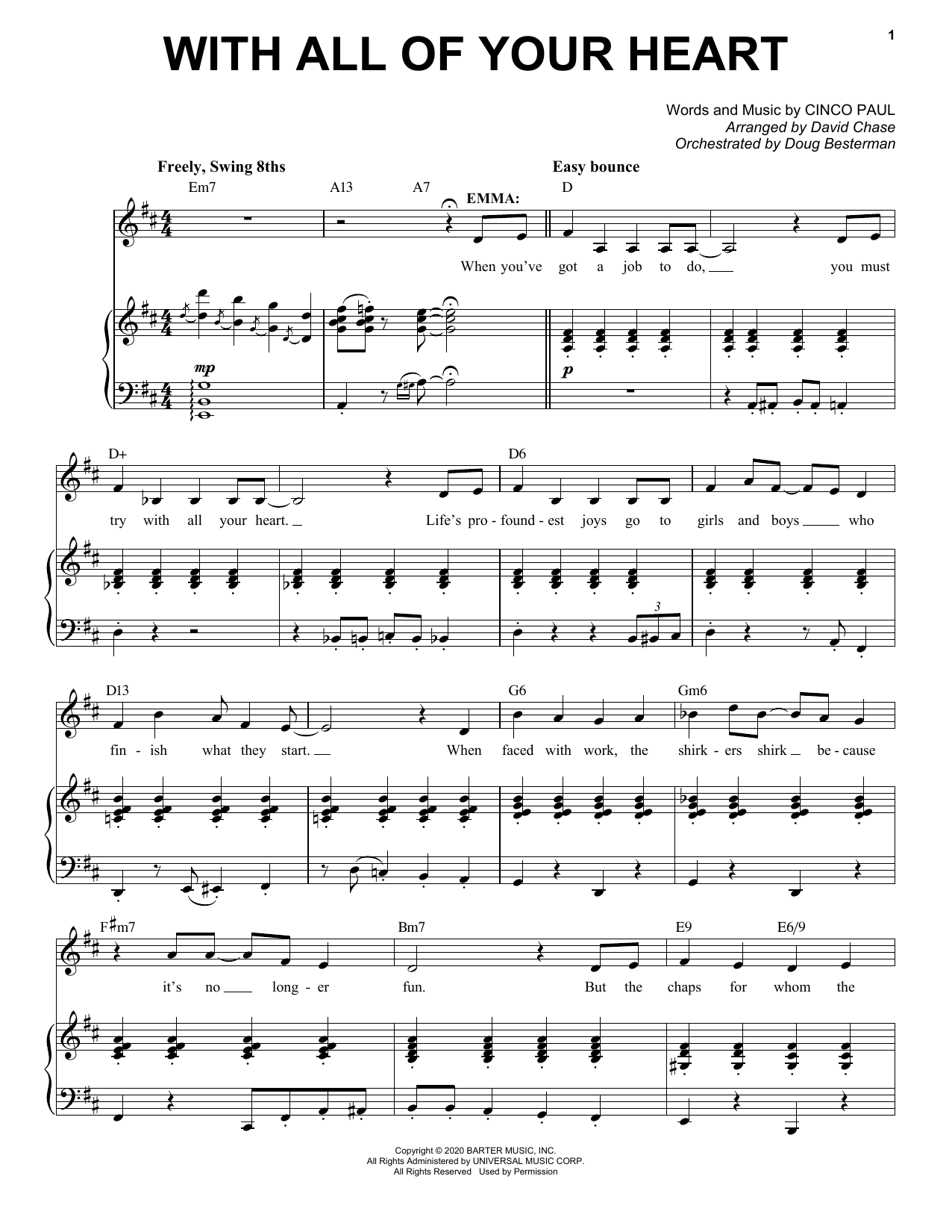 Download or print Cinco Paul With All Of Your Heart (from Schmigadoon!) sheet music, chords and digital score arranged for Piano & Vocal. This Film/TV score includes 7 page(s).