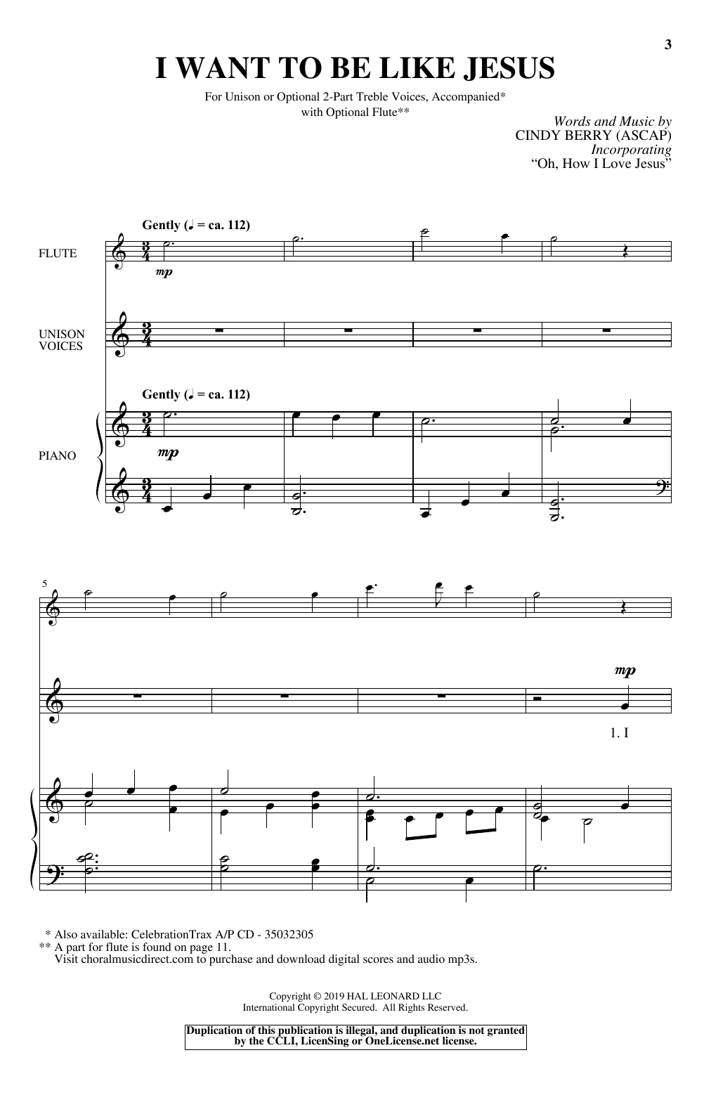 Download or print Cindy Berry I Want To Be Like Jesus sheet music, chords and digital score arranged for Unison Choir. This Concert score includes 9 page(s).