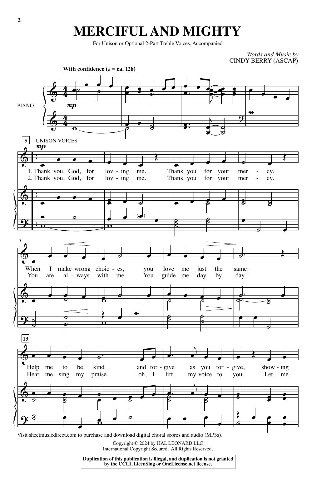 Download or print Cindy Berry Merciful And Mighty sheet music, chords and digital score arranged for Choir. This Children score includes 5 page(s).