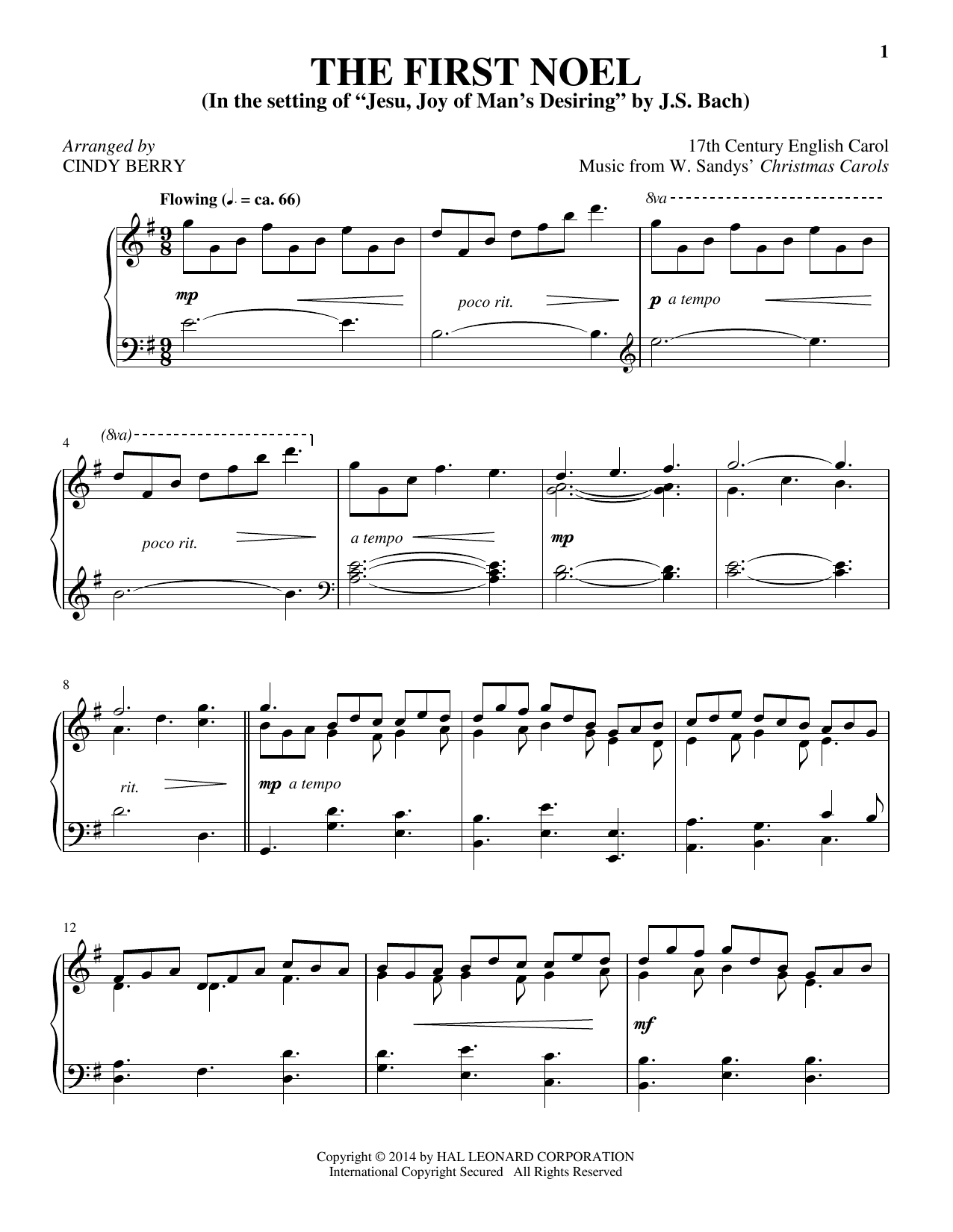 Download or print Cindy Berry The First Noel sheet music, chords and digital score arranged for Piano Solo. This Christmas score includes 4 page(s).