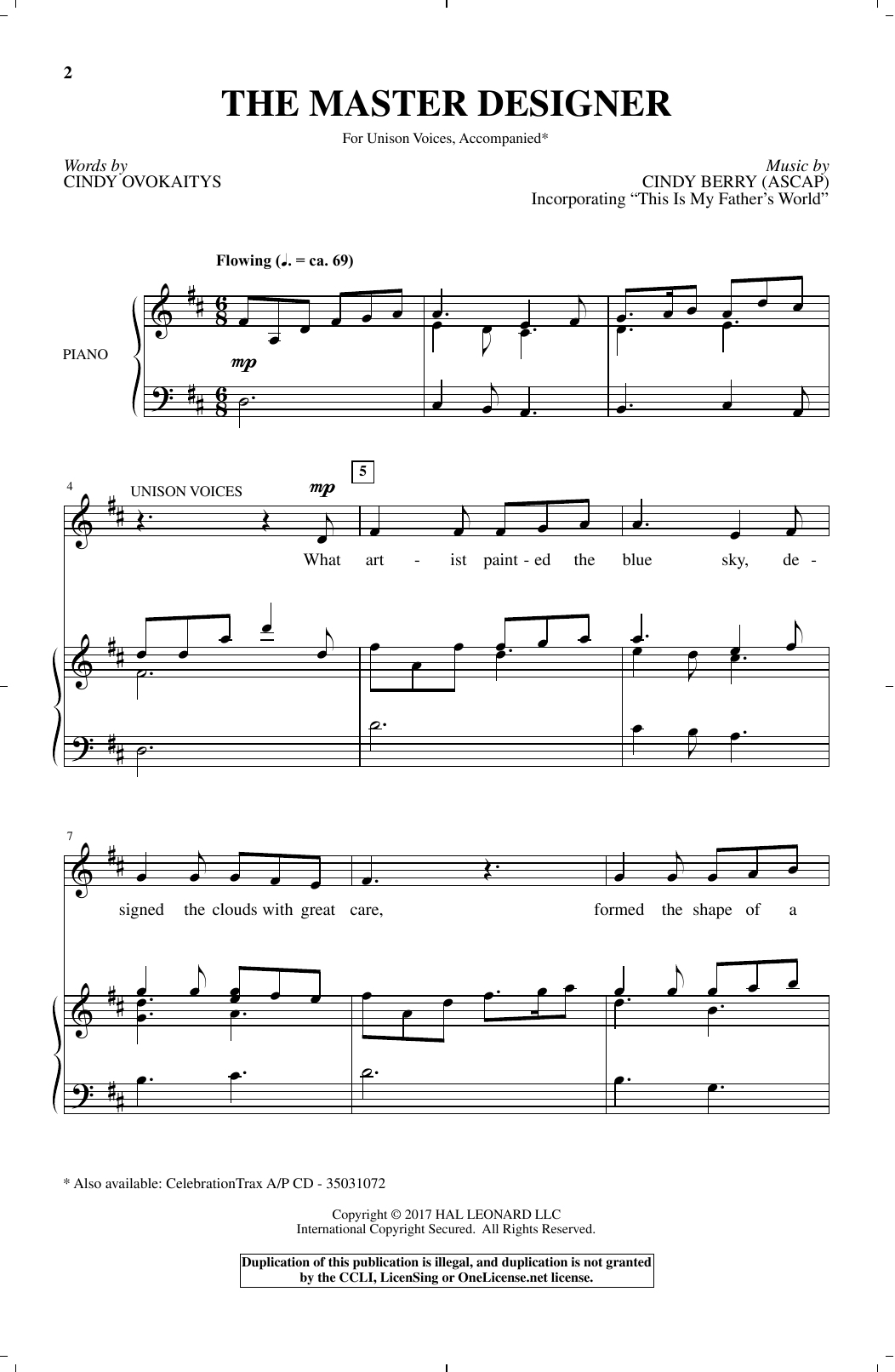 Download or print Cindy Berry The Master Designer sheet music, chords and digital score arranged for Unison Choir. This Children score includes 7 page(s).