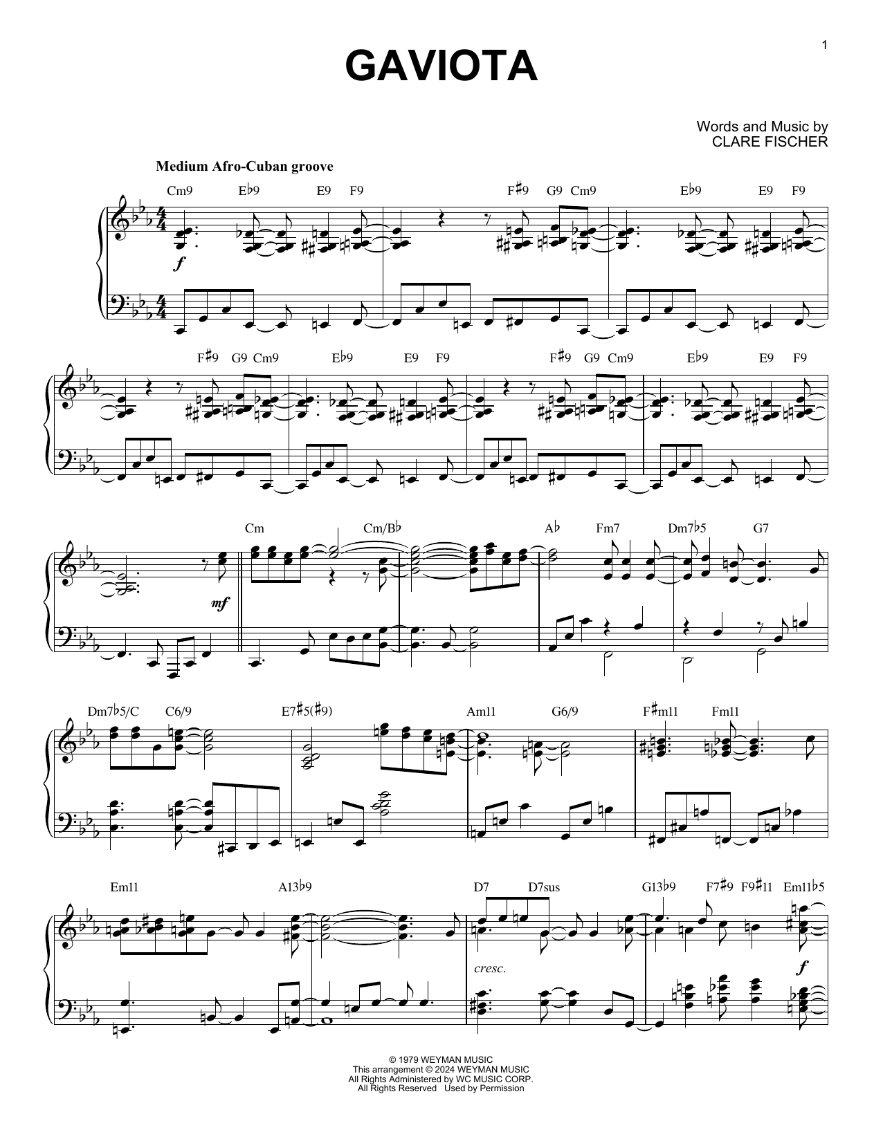 Download or print Clare Fischer Gaviota (arr. Brent Edstrom) sheet music, chords and digital score arranged for Piano Solo. This Jazz score includes 4 page(s).