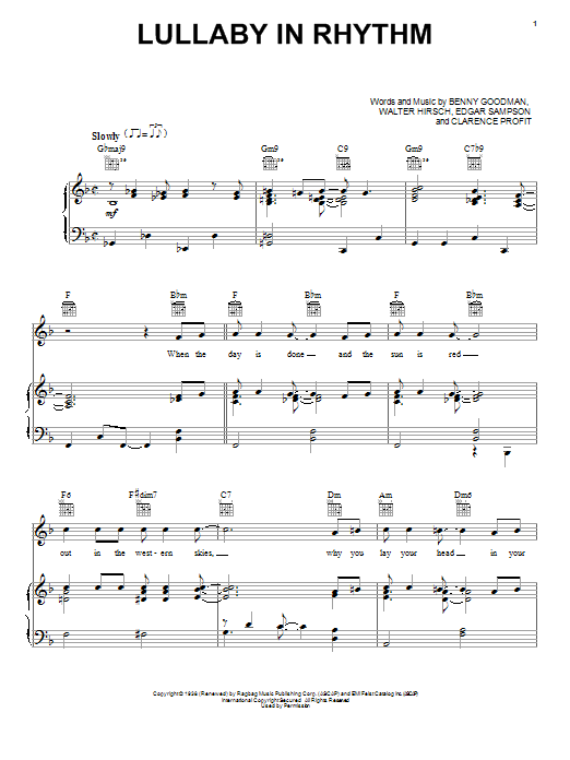 Download or print Clarence Profit Lullaby In Rhythm sheet music, chords and digital score arranged for Piano, Vocal & Guitar Chords (Right-Hand Melody). This Jazz score includes 4 page(s).