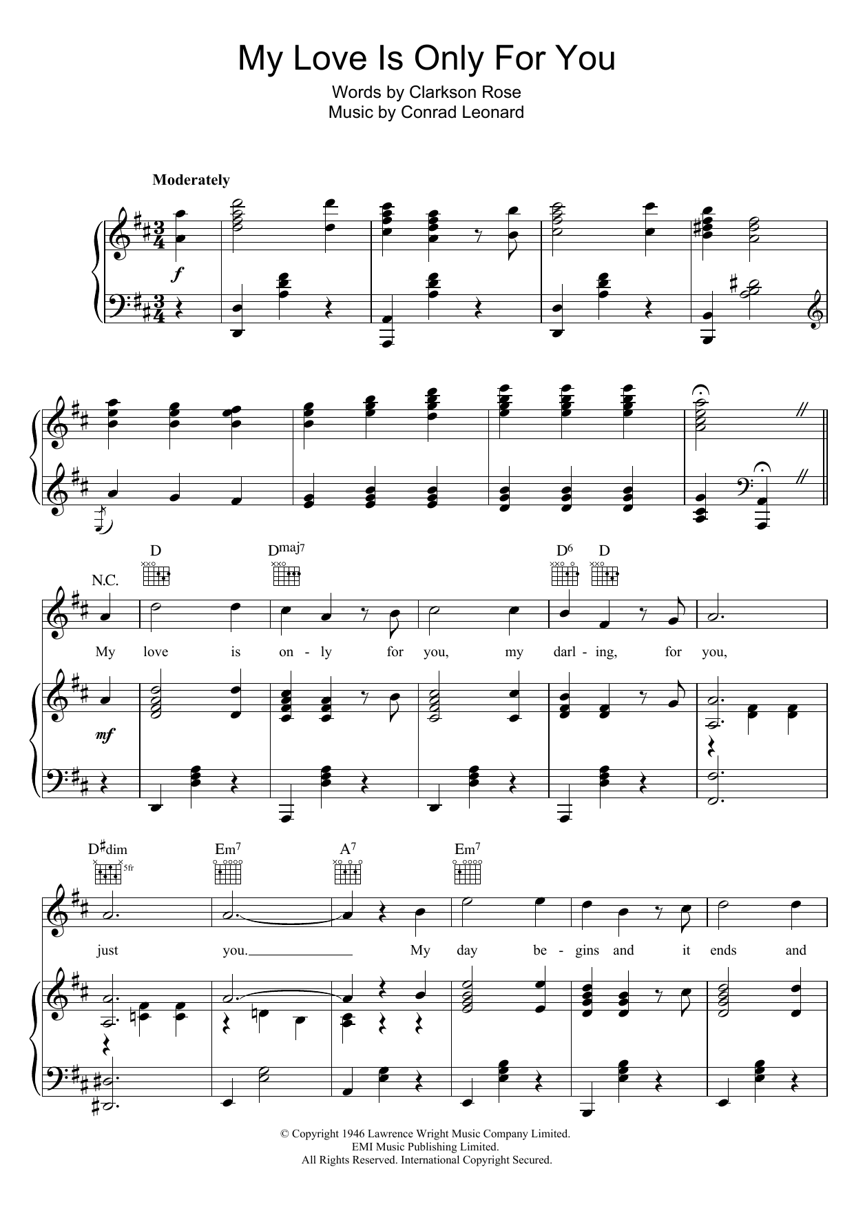 Download or print Clarkson Rose My Love Is Only For You sheet music, chords and digital score arranged for Piano, Vocal & Guitar Chords. This Standards score includes 6 page(s).