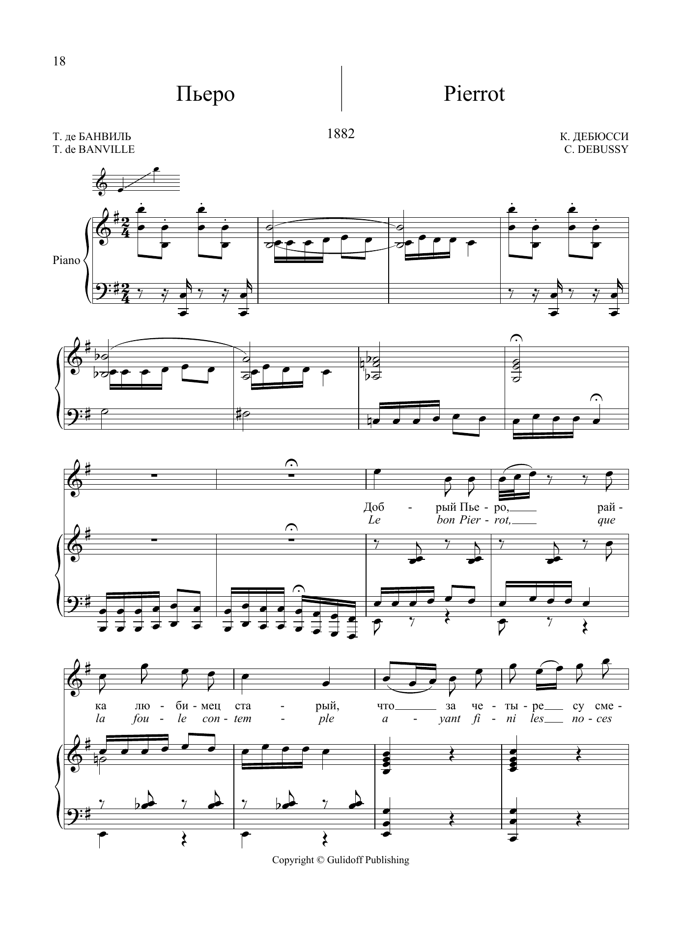 Download or print Claude Debussy 20 Songs Vol. 1: Pierrot sheet music, chords and digital score arranged for Piano & Vocal. This Classical score includes 4 page(s).