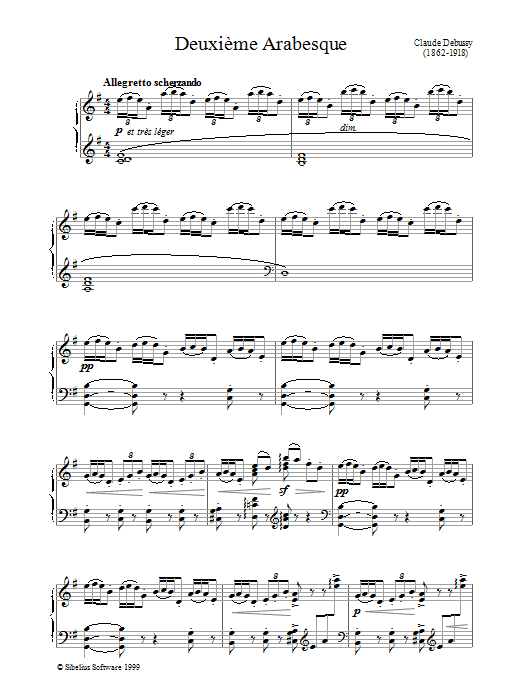 Download or print Claude Debussy Deuxieme Arabesque sheet music, chords and digital score arranged for Piano Solo. This Classical score includes 7 page(s).