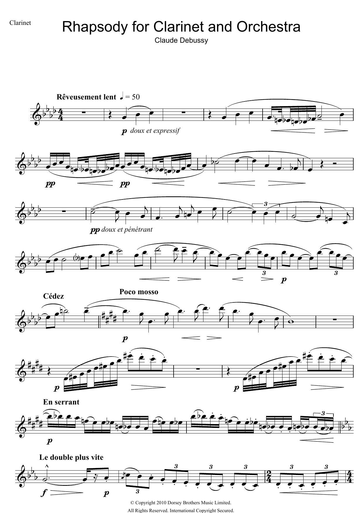 Download or print Claude Debussy Rhapsody For Clarinet And Orchestra sheet music, chords and digital score arranged for Clarinet Solo. This Classical score includes 5 page(s).
