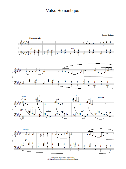 Download or print Claude Debussy Valse Romantique sheet music, chords and digital score arranged for Easy Piano. This Classical score includes 3 page(s).