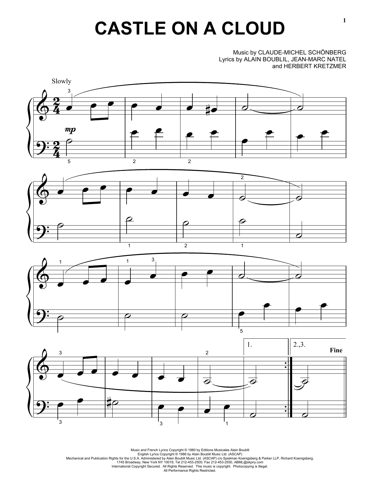 Download or print Claude-Michel Schönberg Castle On A Cloud sheet music, chords and digital score arranged for Flute Solo. This Musical/Show score includes 1 page(s).