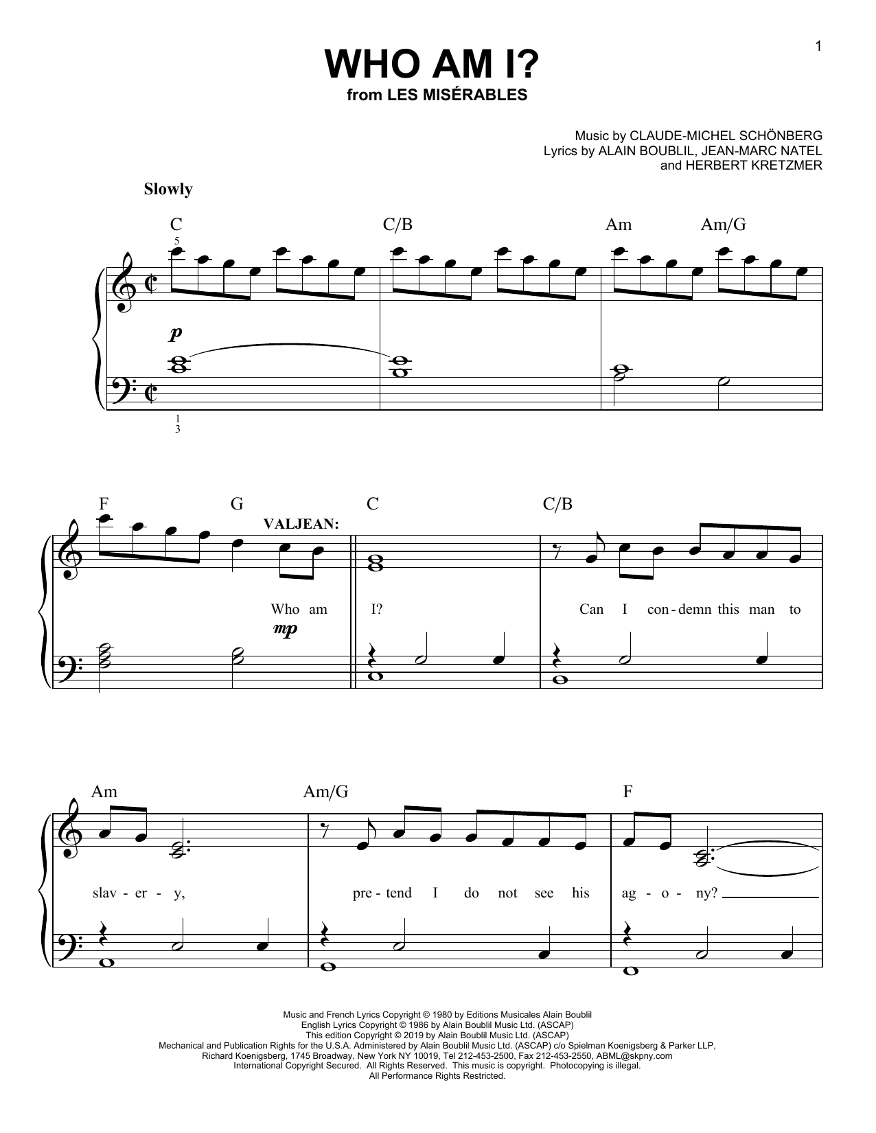 Download or print Claude-Michel Schönberg Who Am I? sheet music, chords and digital score arranged for Flute Solo. This Musical/Show score includes 1 page(s).