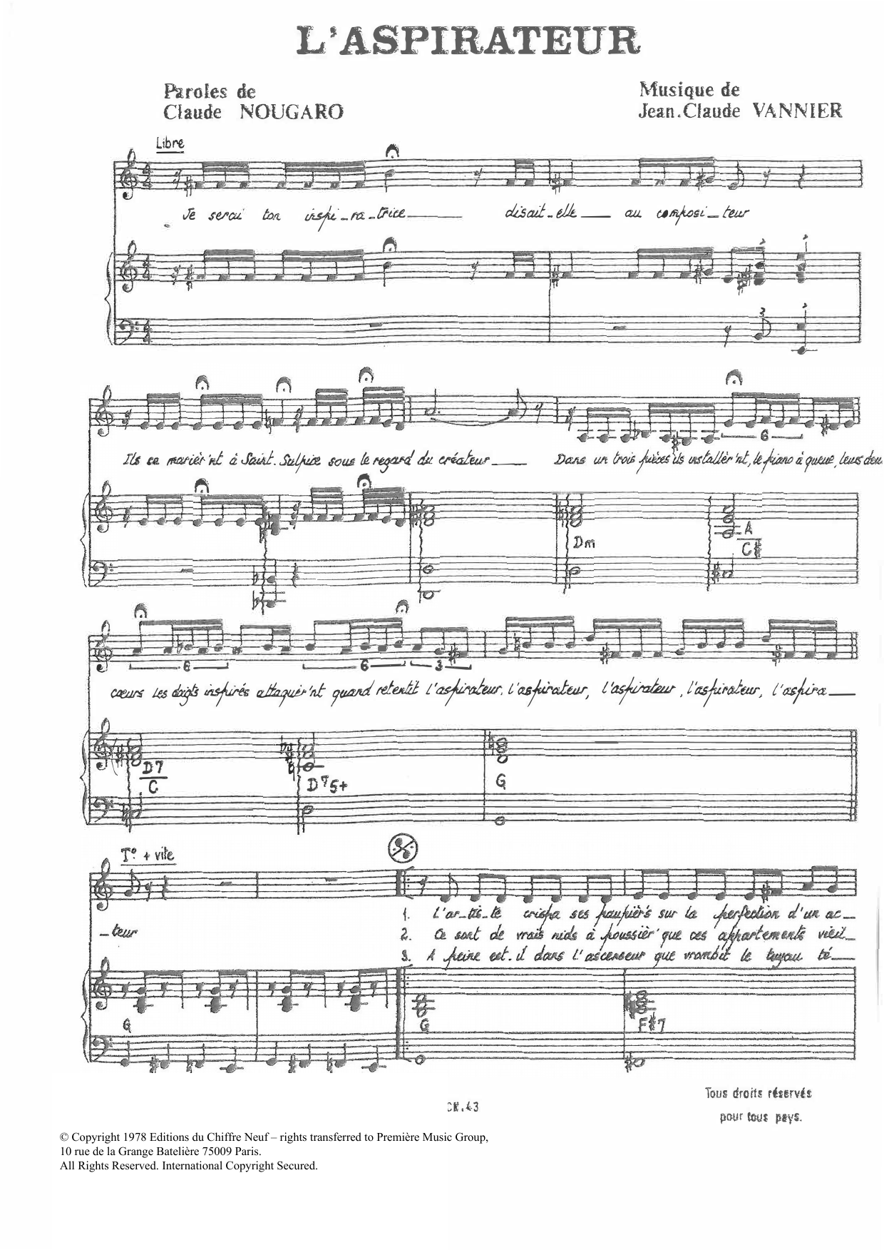 Download or print Claude Nougaro L'Aspirateur sheet music, chords and digital score arranged for Piano & Vocal. This Pop score includes 7 page(s).