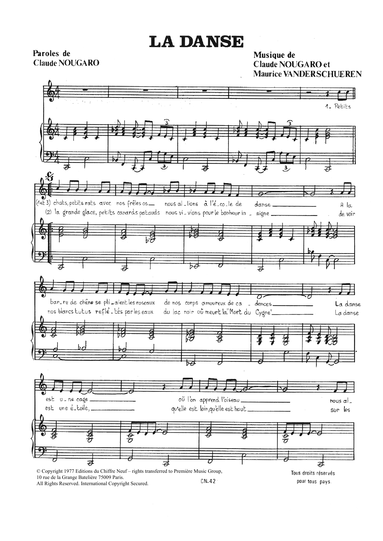 Download or print Claude Nougaro La Danse sheet music, chords and digital score arranged for Piano & Vocal. This Pop score includes 4 page(s).