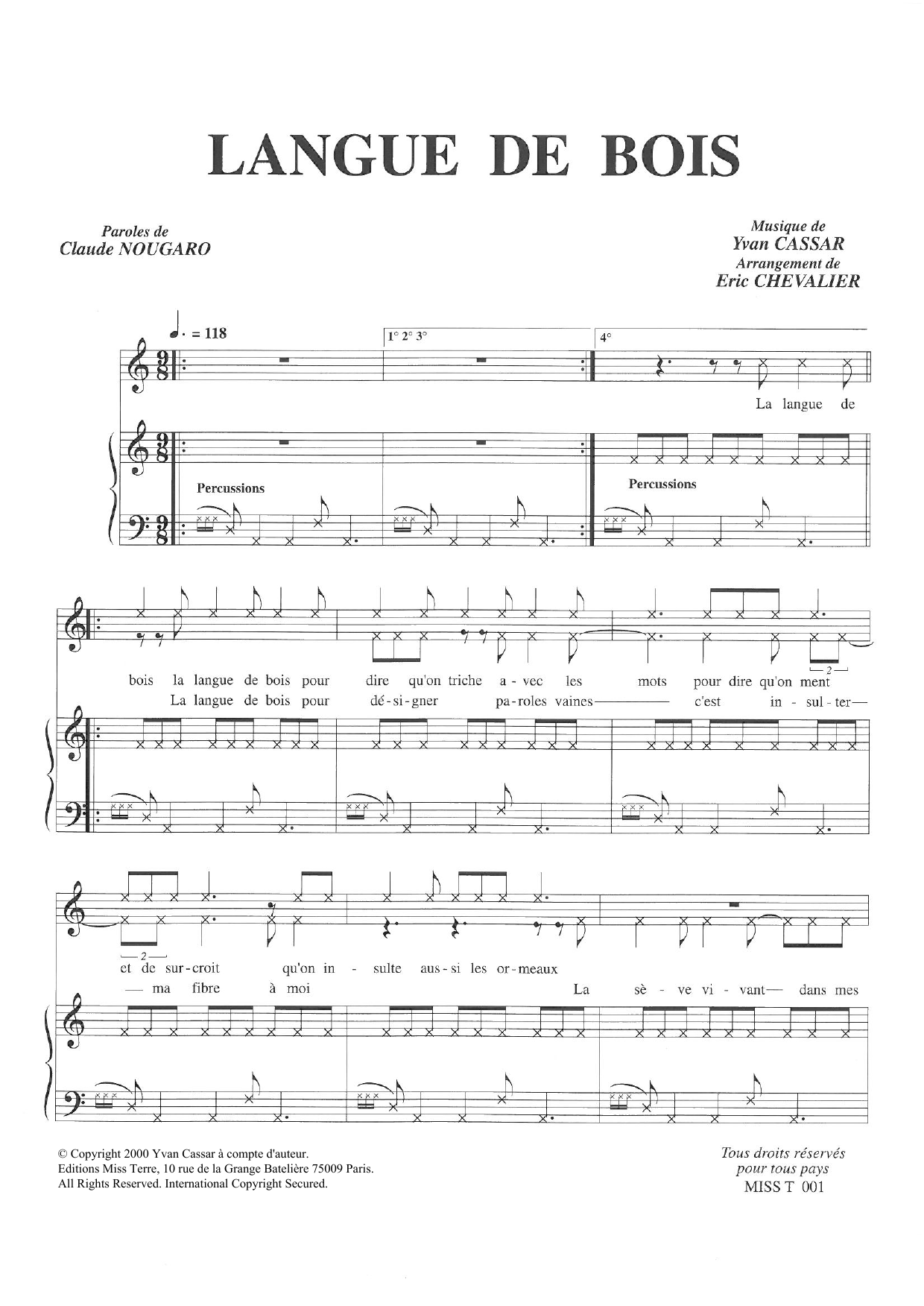 Download or print Claude Nougaro Langue De Bois sheet music, chords and digital score arranged for Piano & Vocal. This Pop score includes 8 page(s).