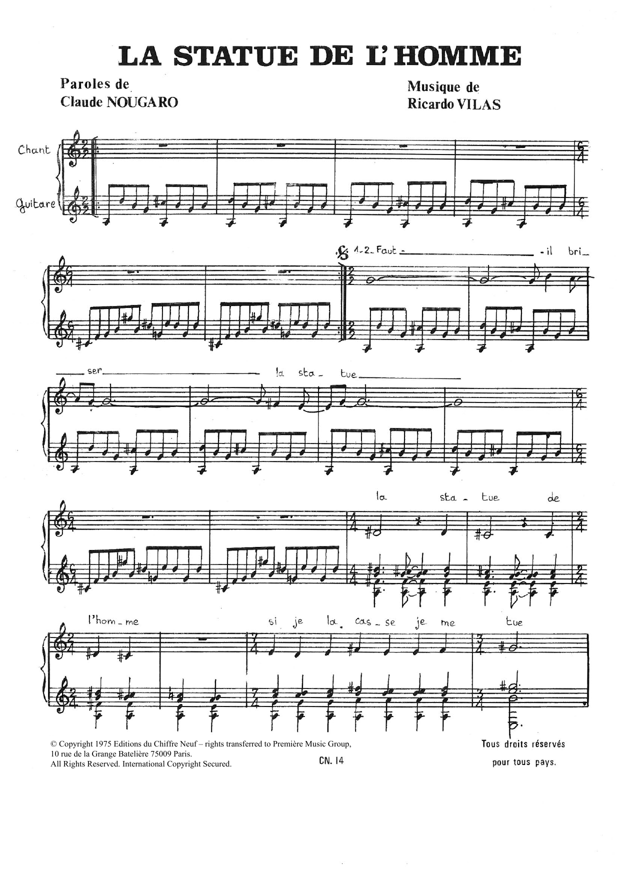 Download or print Claude Nougaro Statue De L'homme sheet music, chords and digital score arranged for Piano & Vocal. This Pop score includes 5 page(s).