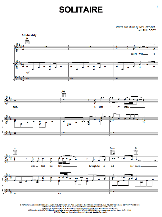 Download or print Clay Aiken Solitaire sheet music, chords and digital score arranged for Piano, Vocal & Guitar Chords (Right-Hand Melody). This Pop score includes 9 page(s).