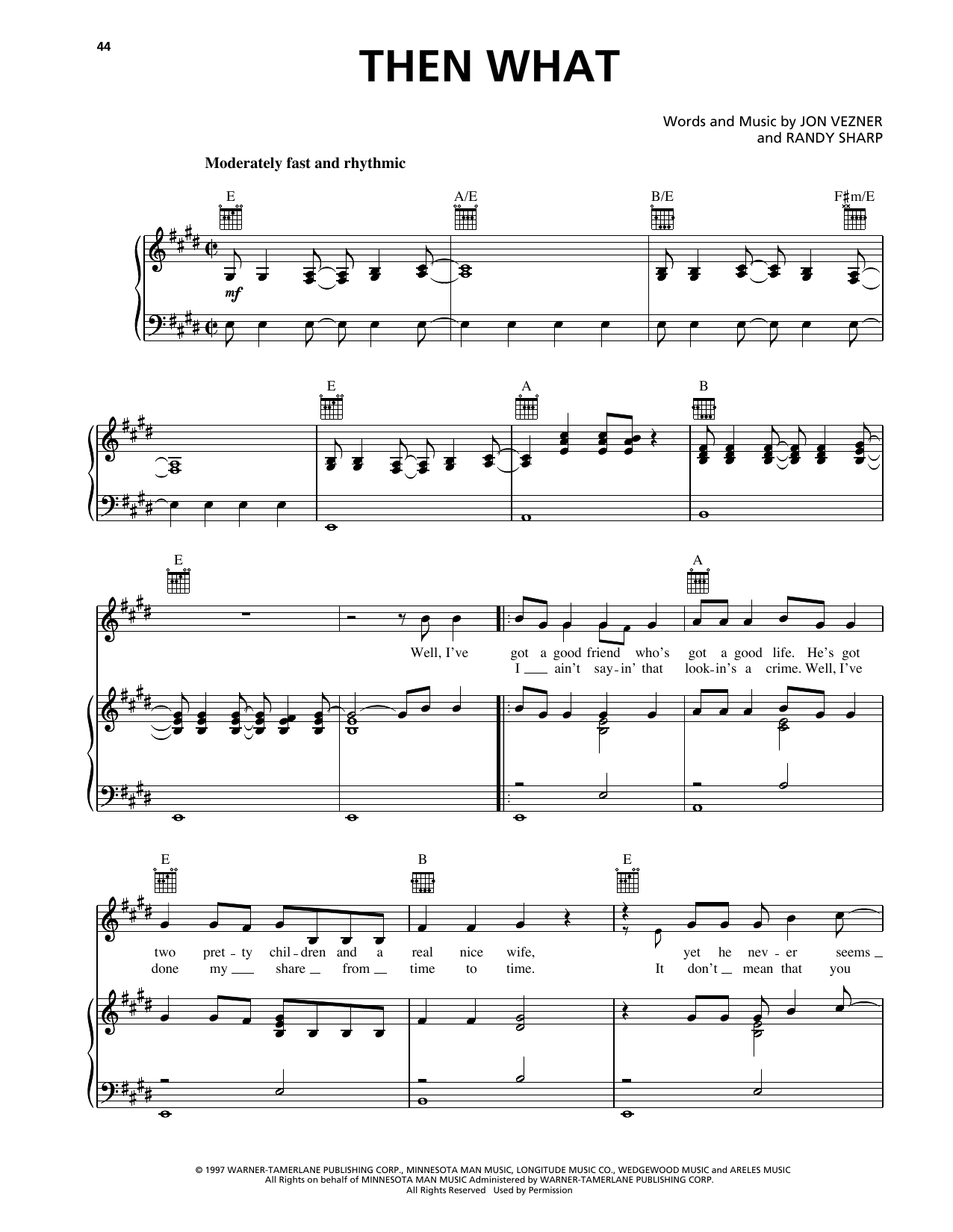 Download or print Clay Walker Then What sheet music, chords and digital score arranged for Piano, Vocal & Guitar Chords (Right-Hand Melody). This Country score includes 5 page(s).