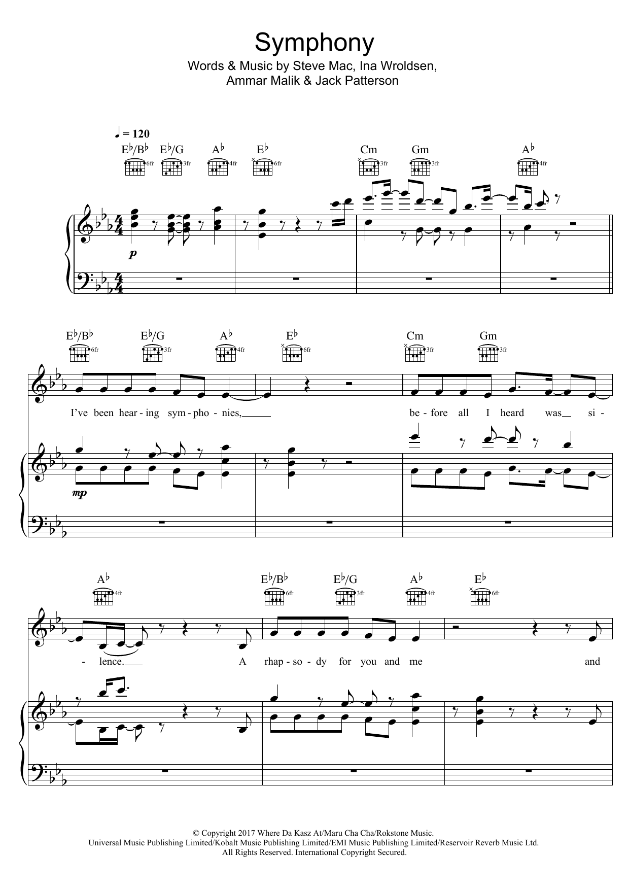 Download or print Clean Bandit Symphony (featuring Zara Larsson) sheet music, chords and digital score arranged for Piano, Vocal & Guitar Chords. This Pop score includes 8 page(s).