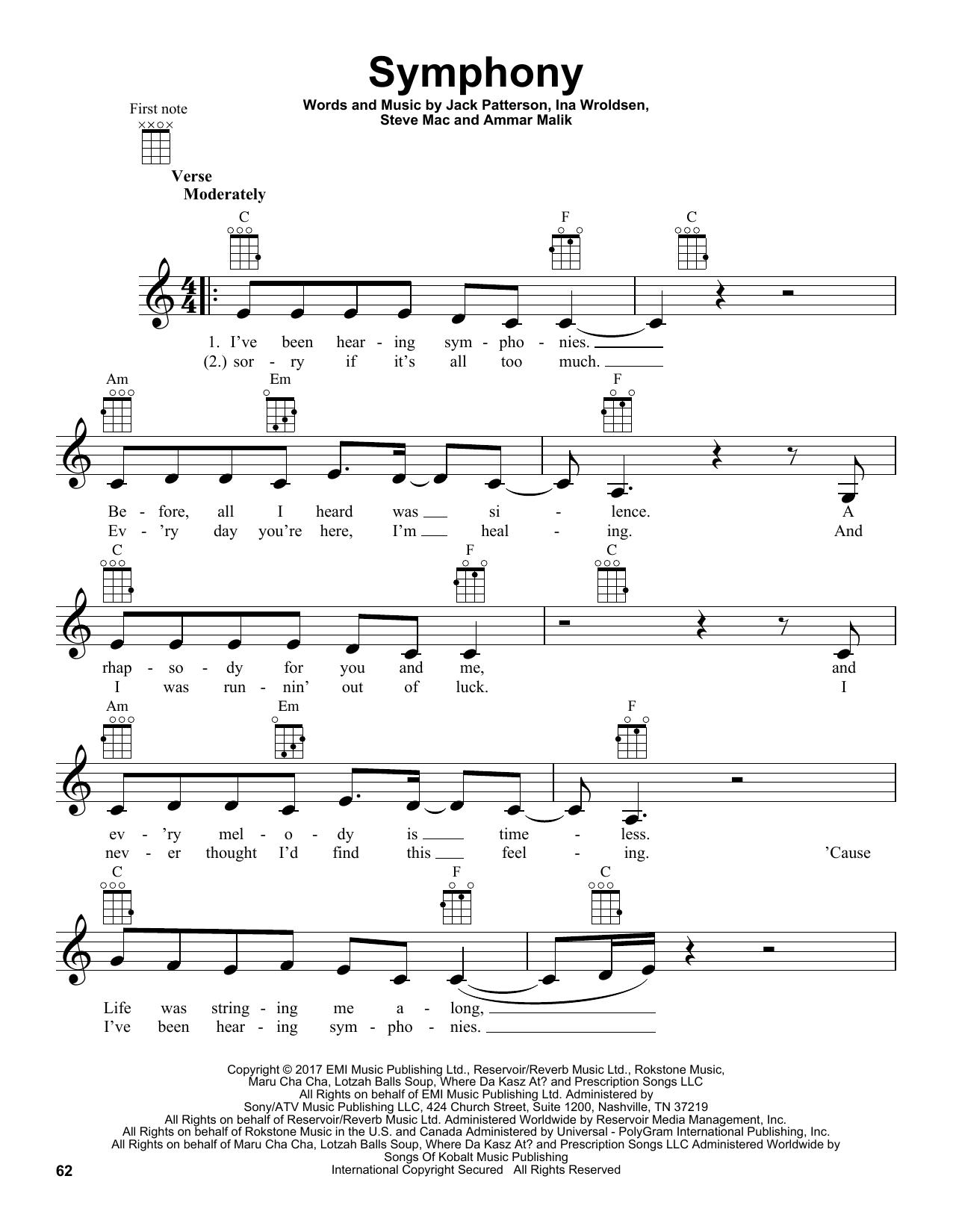 Download or print Clean Bandit Symphony (feat. Zara Larsson) sheet music, chords and digital score arranged for Easy Piano. This Pop score includes 6 page(s).