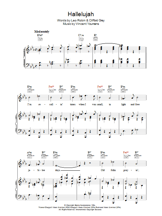 Download or print Leo Robin Hallelujah sheet music, chords and digital score arranged for Piano, Vocal & Guitar Chords. This Jazz score includes 5 page(s).