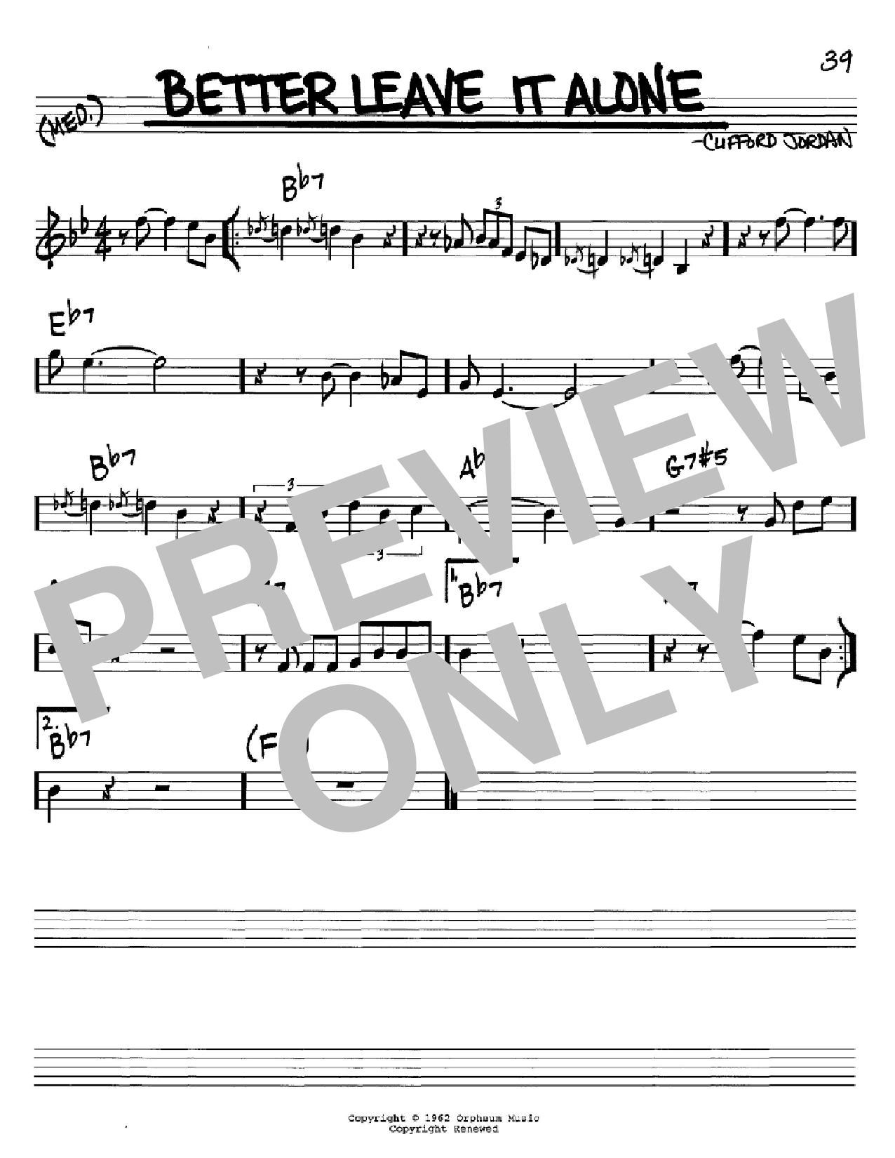 Download or print Clifford Jordan Better Leave It Alone sheet music, chords and digital score arranged for Real Book – Melody & Chords – C Instruments. This Jazz score includes 1 page(s).