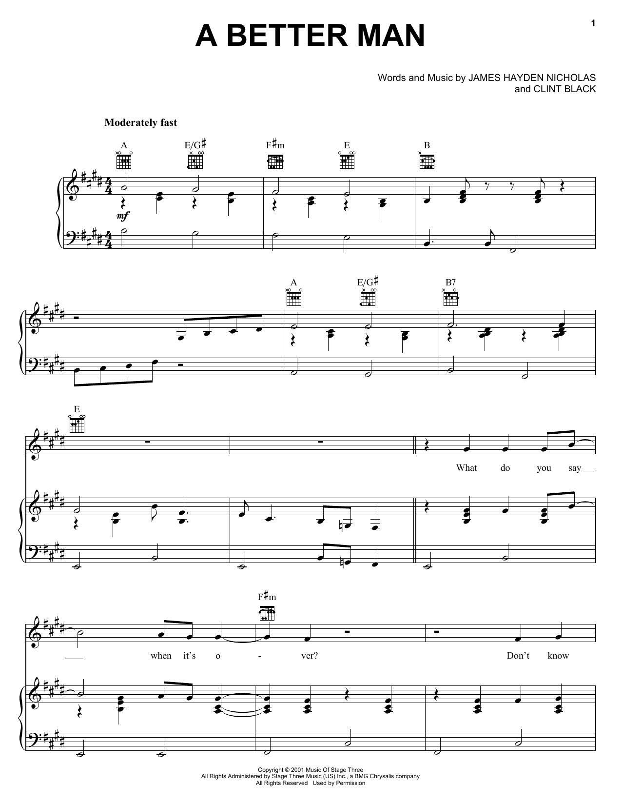 Download or print Clint Black A Better Man sheet music, chords and digital score arranged for Lead Sheet / Fake Book. This Country score includes 1 page(s).