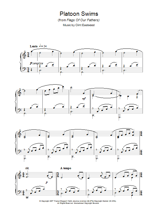 Download or print Clint Eastwood Platoon Swims (from Flags Of Our Fathers) sheet music, chords and digital score arranged for Piano Solo. This Film/TV score includes 3 page(s).