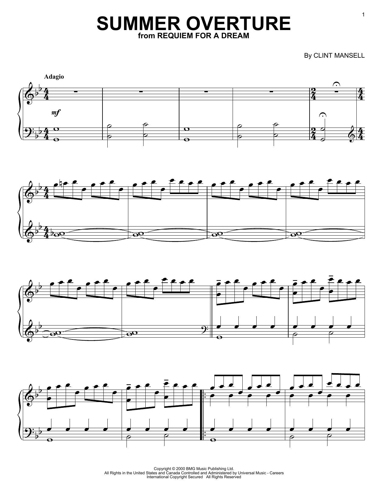 Quick facts Summer Overture (from Requiem For A Dream) about digital sheet music