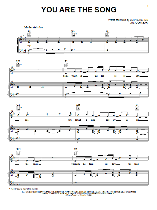 Download or print Cody Karey You Are The Song sheet music, chords and digital score arranged for Piano, Vocal & Guitar Chords (Right-Hand Melody). This Pop score includes 7 page(s).
