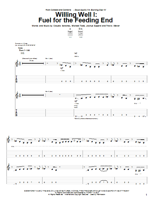 Download or print Coheed And Cambria Willing Well I: Fuel For The Feeding End sheet music, chords and digital score arranged for Guitar Tab. This Pop score includes 21 page(s).