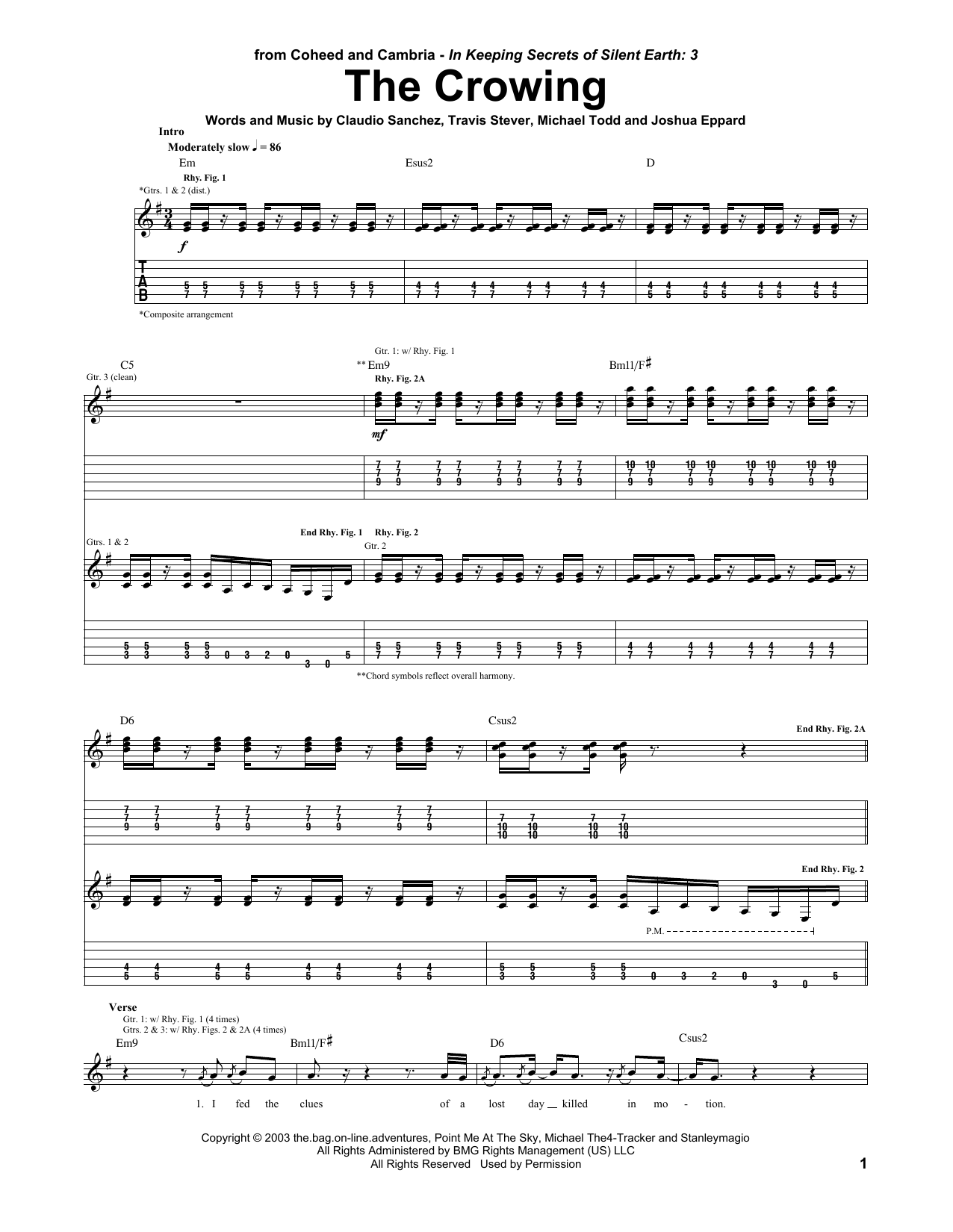 Download or print Coheed And Cambria The Crowing sheet music, chords and digital score arranged for Guitar Tab. This Metal score includes 16 page(s).