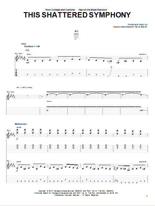 Download or print Coheed And Cambria This Shattered Symphony sheet music, chords and digital score arranged for Guitar Tab. This Pop score includes 10 page(s).