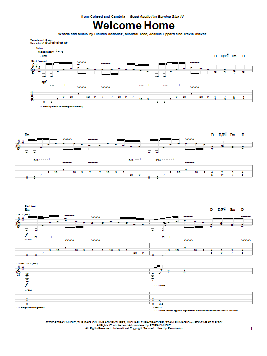 Download or print Coheed And Cambria Welcome Home sheet music, chords and digital score arranged for Easy Guitar Tab. This Pop score includes 5 page(s).