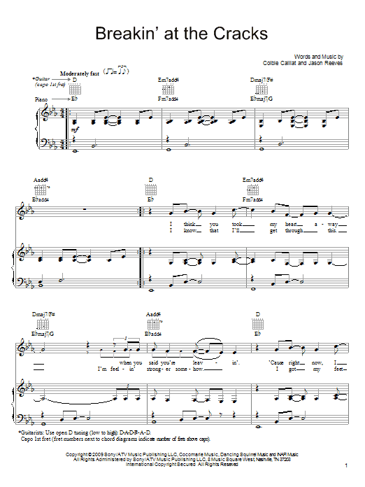 Download or print Colbie Caillat Breakin' At The Cracks sheet music, chords and digital score arranged for Piano, Vocal & Guitar Chords (Right-Hand Melody). This Pop score includes 8 page(s).
