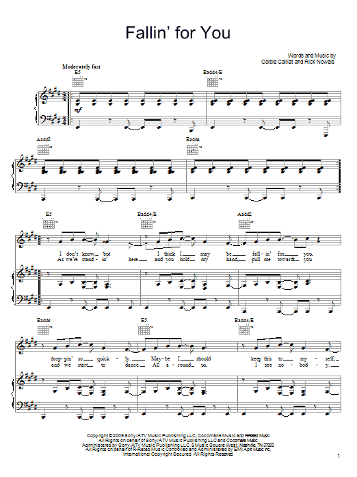 Download or print Colbie Caillat Fallin' For You sheet music, chords and digital score arranged for Easy Piano. This Pop score includes 4 page(s).
