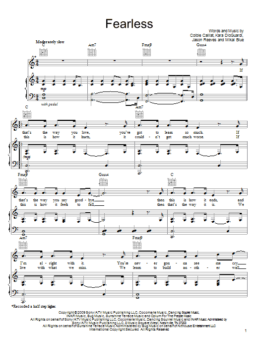 Download or print Colbie Caillat Fearless sheet music, chords and digital score arranged for Piano, Vocal & Guitar Chords (Right-Hand Melody). This Pop score includes 5 page(s).