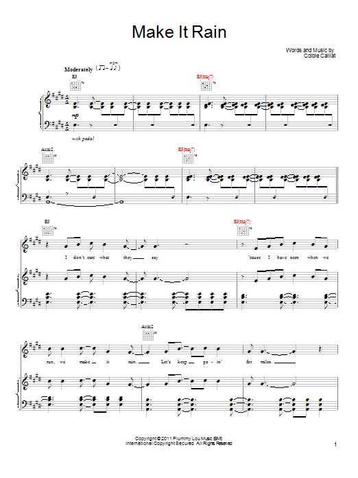 Download or print Colbie Caillat Make It Rain sheet music, chords and digital score arranged for Piano, Vocal & Guitar Chords (Right-Hand Melody). This Pop score includes 6 page(s).