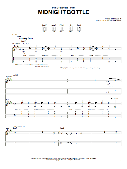 Download or print Colbie Caillat Midnight Bottle sheet music, chords and digital score arranged for Piano, Vocal & Guitar Chords (Right-Hand Melody). This Pop score includes 7 page(s).