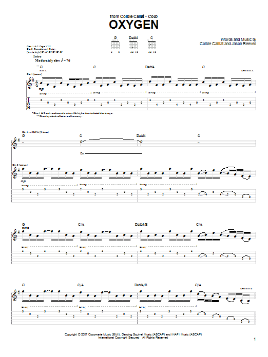 Download or print Colbie Caillat Oxygen sheet music, chords and digital score arranged for Guitar Chords/Lyrics. This Pop score includes 3 page(s).