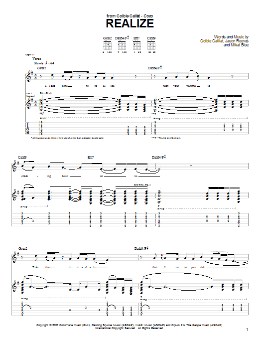Download or print Colbie Caillat Realize sheet music, chords and digital score arranged for Guitar Chords/Lyrics. This Rock score includes 3 page(s).