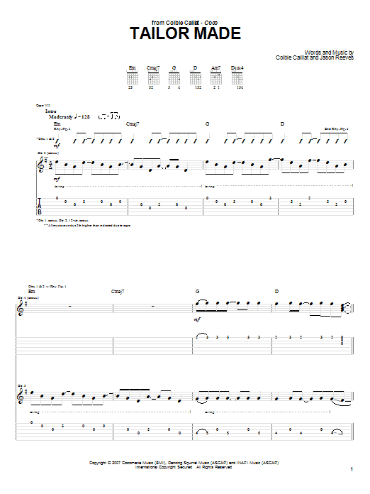 Download or print Colbie Caillat Tailor Made sheet music, chords and digital score arranged for Guitar Tab. This Pop score includes 9 page(s).
