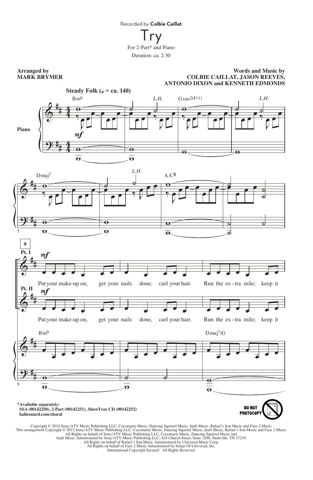 Download or print Mark Brymer Try sheet music, chords and digital score arranged for SSA Choir. This Inspirational score includes 7 page(s).
