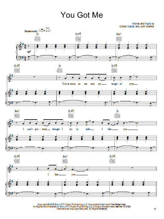 Download or print Colbie Caillat You Got Me sheet music, chords and digital score arranged for Piano, Vocal & Guitar Chords (Right-Hand Melody). This Pop score includes 7 page(s).