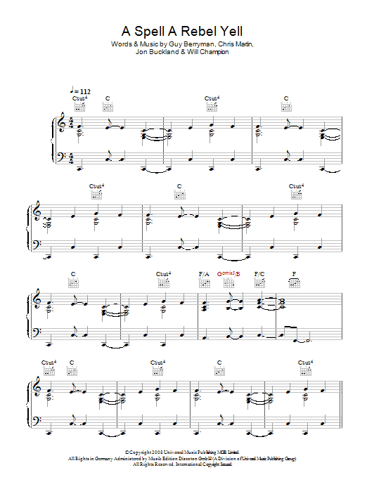 Download or print Coldplay A Spell A Rebel Yell sheet music, chords and digital score arranged for Guitar Chords/Lyrics. This Rock score includes 2 page(s).