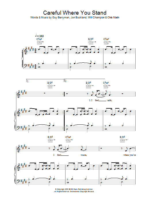 Download or print Coldplay Careful Where You Stand sheet music, chords and digital score arranged for Guitar Tab. This Pop score includes 12 page(s).