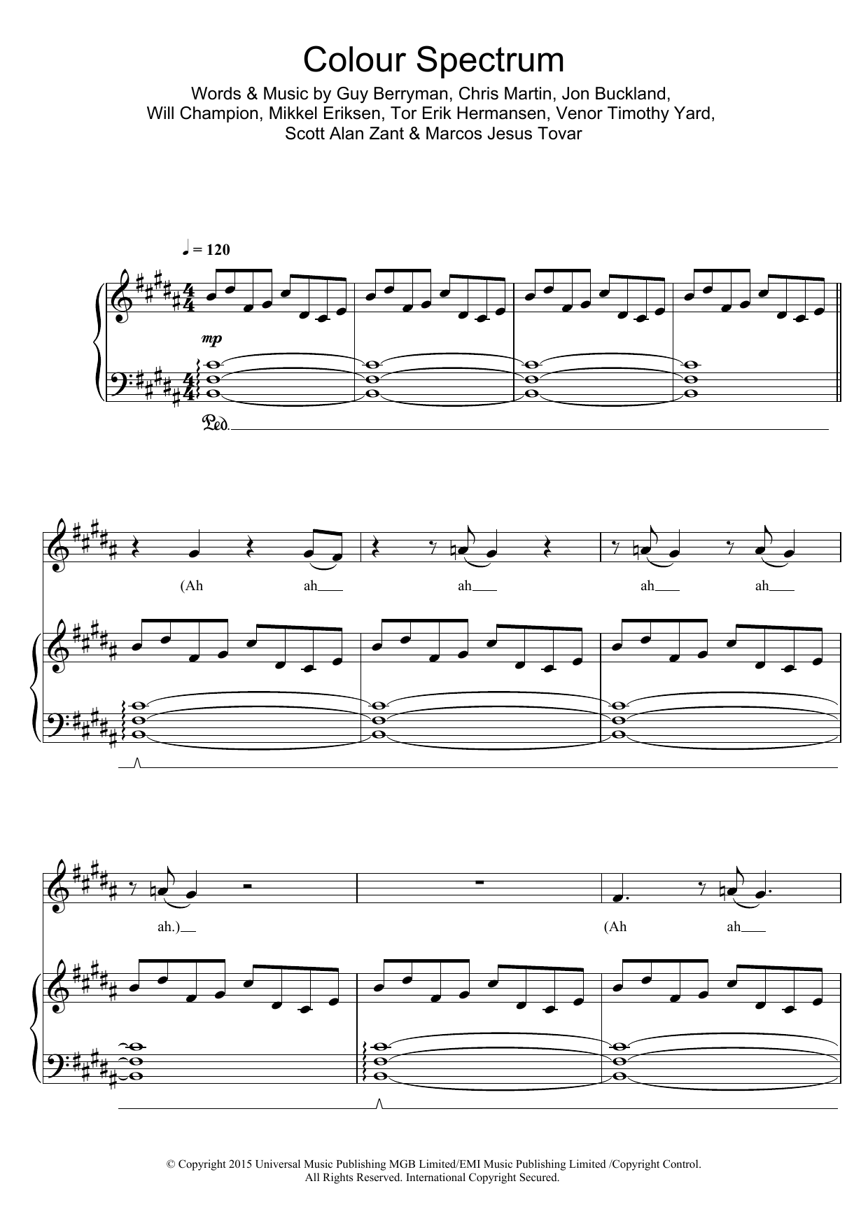 Download or print Coldplay Colour Spectrum sheet music, chords and digital score arranged for Piano, Vocal & Guitar Chords. This Pop score includes 2 page(s).
