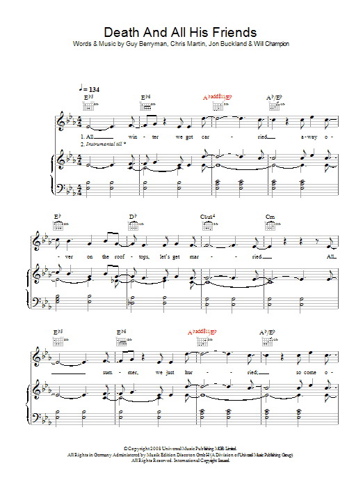 Download or print Coldplay Death And All His Friends sheet music, chords and digital score arranged for Guitar Tab. This Pop score includes 7 page(s).