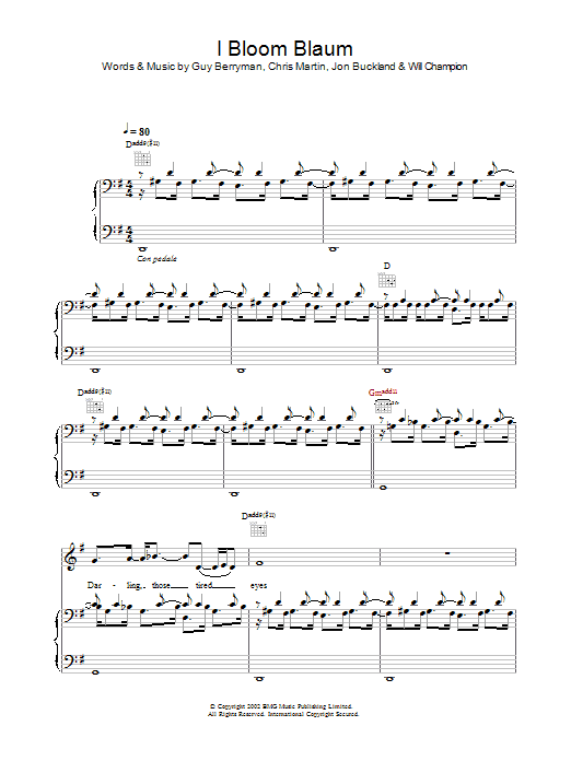 Download or print Coldplay I Bloom Blaum sheet music, chords and digital score arranged for Guitar Tab. This Pop score includes 5 page(s).
